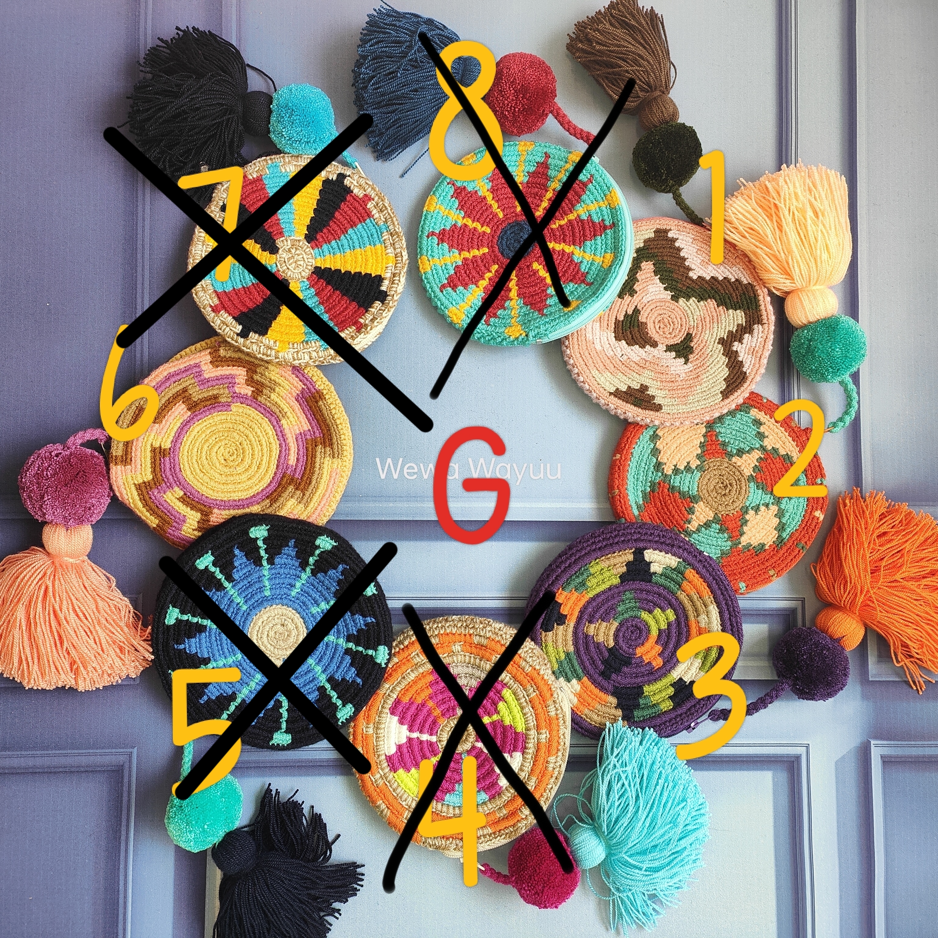 🔔因網站限制太多數量輸入㨂選功能 請whatsapp店主需的款式🛎️ ❌❌SOLD no.❌❌ B:1, 2, 6,9,10 C:4, 6,7 ,8, 9 D:1, 2,3, 4, 6,7,8 E:2, 3,4,10 F:9,10 G:4, 5, 7, 8 跟配波波吊飾 一般直徑 12cm - 14cm (因手造品尺寸 不一,有1-2cm 差異 視乎個別款式或會稍大或小的情況) ⚠️拍攝環境及燈光 顏色會有輕微色差 ⚠️全部款式只得一個 ⚠️拍攝為室內自然光線,相片都沒用調色。 但因每部電話/電腦顯示顏色都會輕微差異。一切以實物為準, 請留意及買前先了解清楚。 ⚠️每一個袋都是100%人手織製, 難免會有線頭,接口位。 而且每個袋都會因織製者的力度不同尺寸有1-2cm 的差距。 X貨物出門恕不退換X 歡迎messages 及What'sapp 查詢:84818600